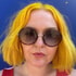 Lady holding a big bunch of flowers with her long flowing blonde hair, perfect card to tell someone you are thinking of them or a thankyou card